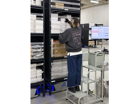 ロボットシステムが自動運搬で、商品棚を目の前まで運んでくれるので、